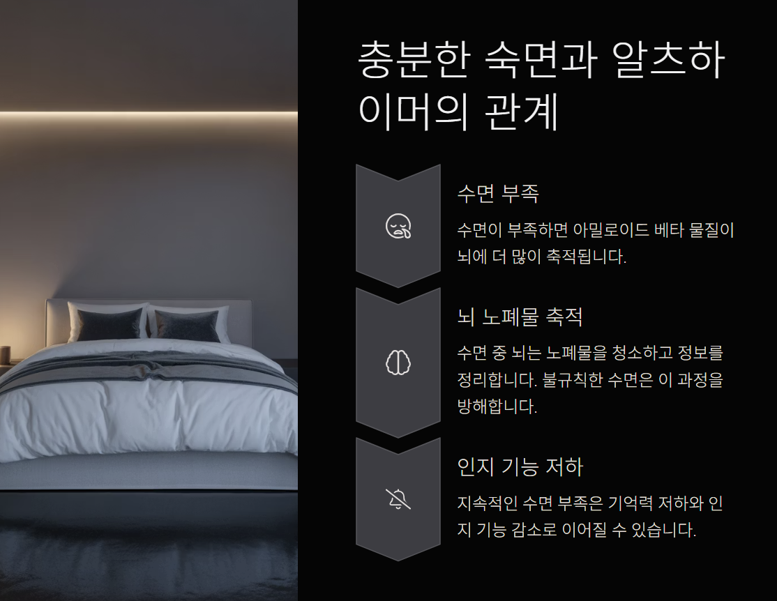 뇌 건강을 유지하기 위해서는 충분한 숙면이 필수적입니다. 여기서는 알츠하이머와 수면의 관계, 숙면을 위한 생활 습관, 그리고 수면 건강이 뇌에 미치는 영향을 살펴보겠습니다.