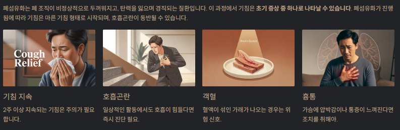 “기침이 길어지는 이유는 단순한 감기일 수도 있지만, 폐섬유화와 같은 심각한 질환의 신호일 수 있습니다.”
