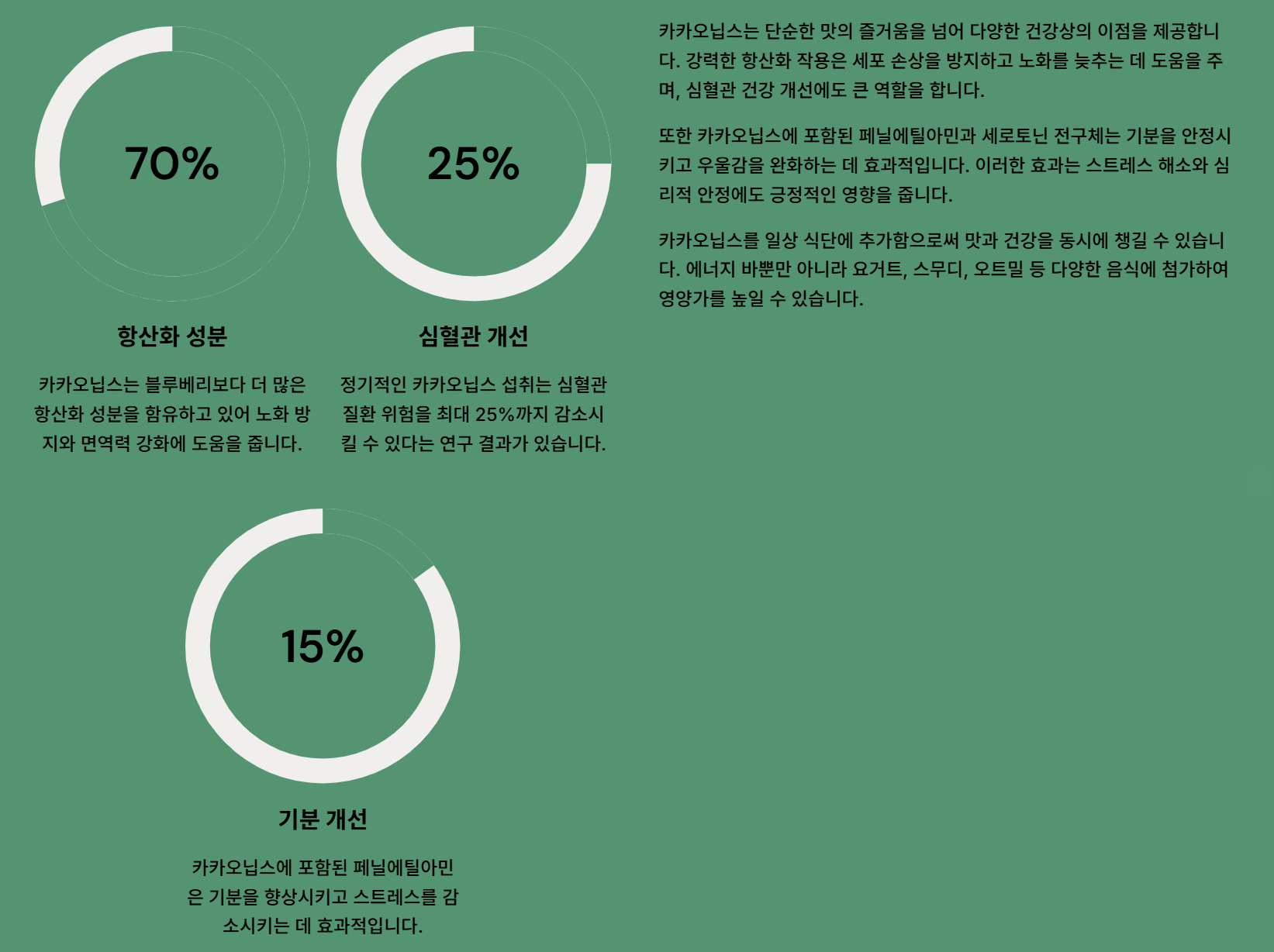 | 카카오닙스 | 항산화작용, 기분 개선 |