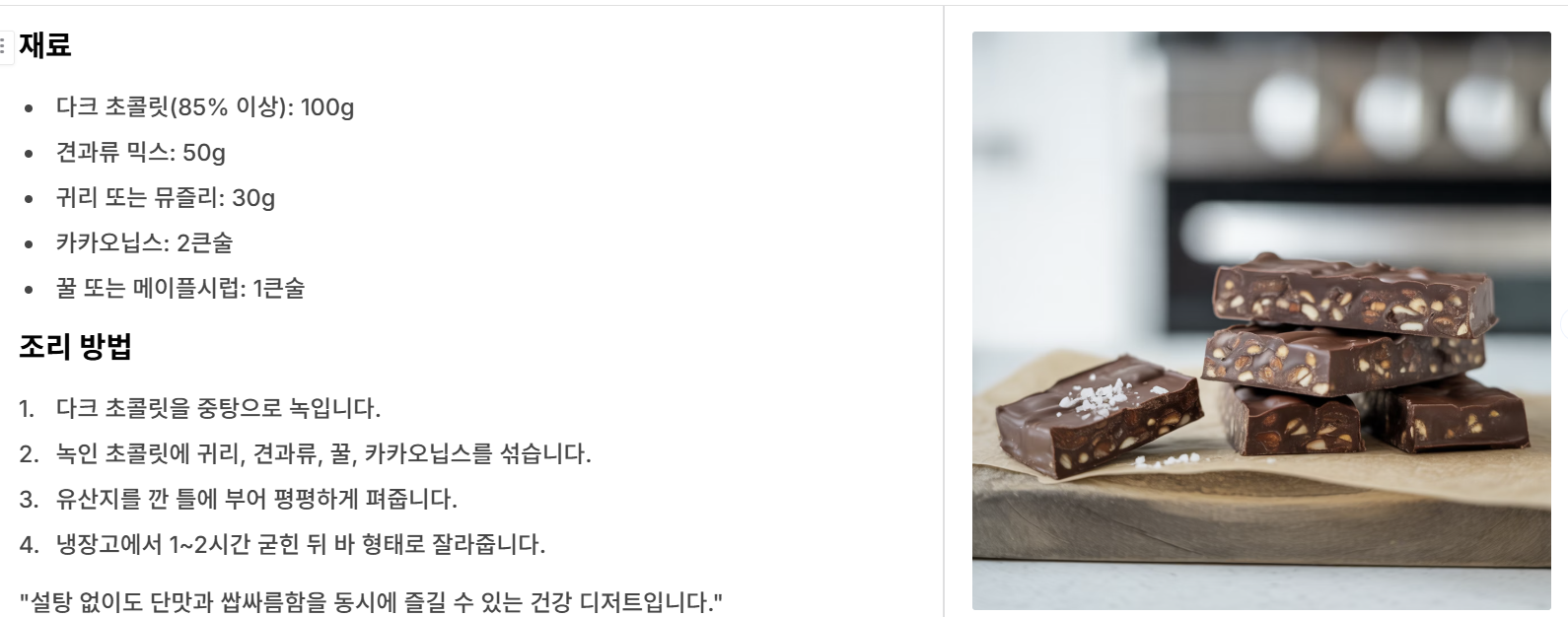 | 다크초콜릿 | 설탕을 줄이고 풍미 강화 |