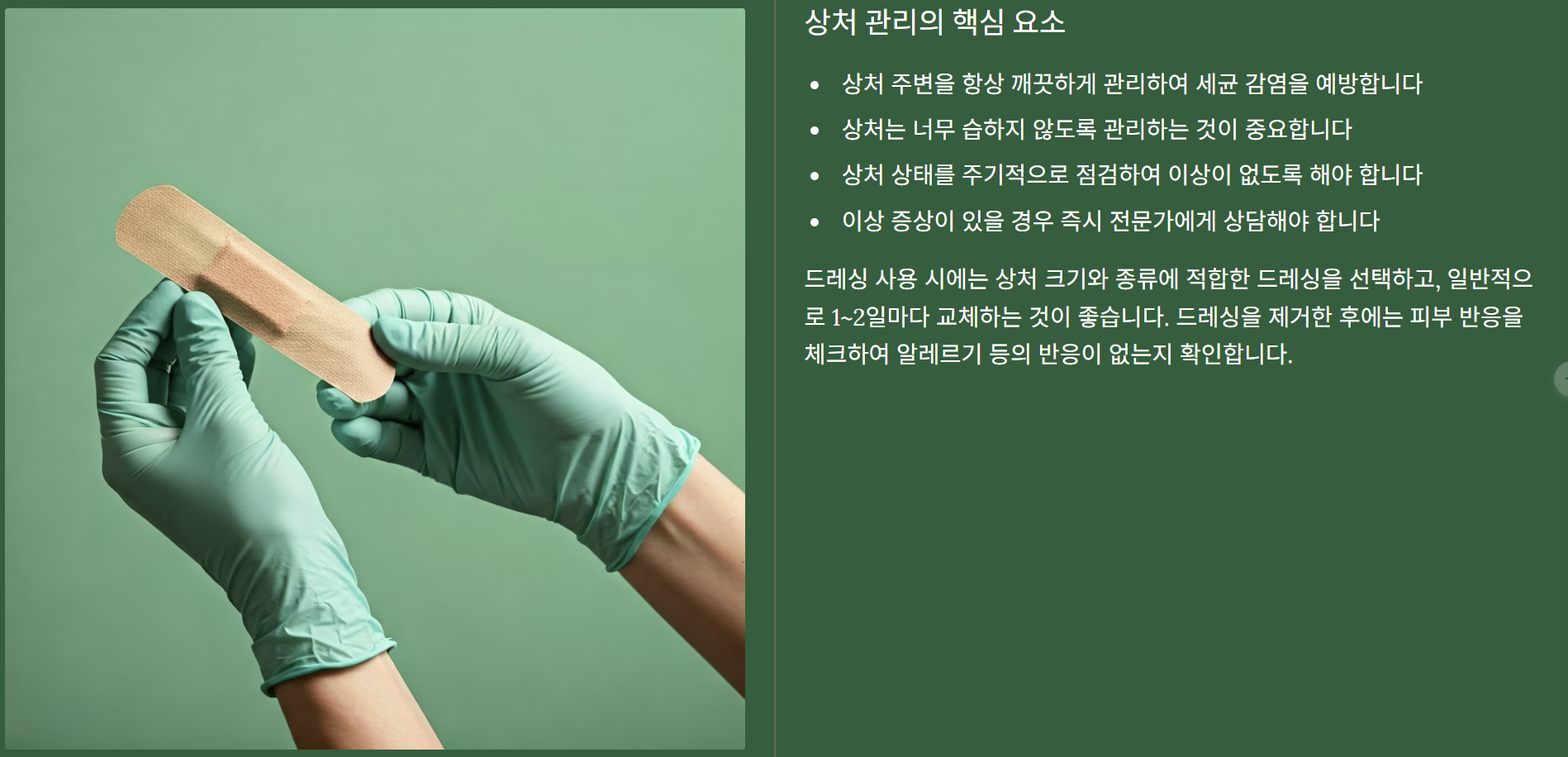 상처 부위를 제대로 관리하지 않으면 오히려 감염의 위험이 증가할 수 있으므로, 정확한 방법으로 사용해야 합니다.