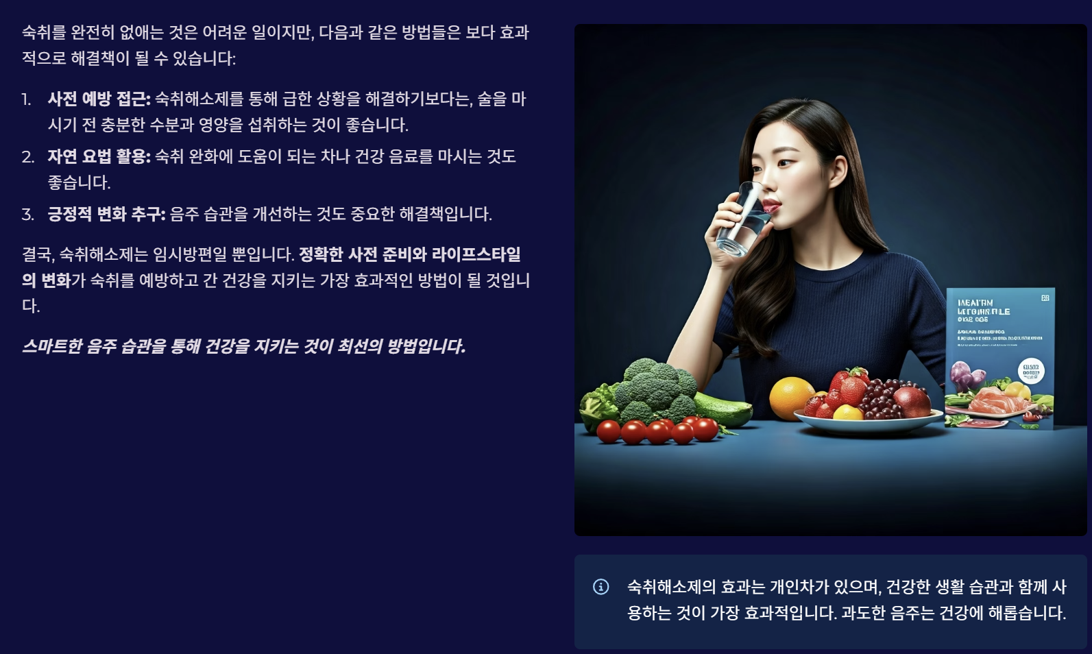 결국, 숙취해소제는 임시방편일 뿐입니다. 정확한 사전 준비와 라이프스타일의 변화가 숙취를 예방하고 간 건강을 지키는 가장 효과적인 방법이 될 것입니다. *스마트한 음주 습관을 통해 건강을 지키는 것이 최선의 방법입니다.*